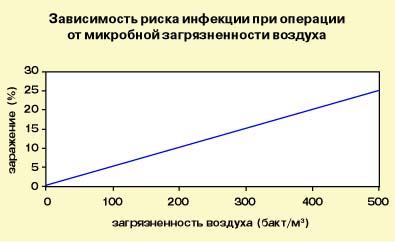 Как показали исследования, соблюдение правил противоэпидемического режима, применение покрытий, масок и спецодежды уменьшает, но не может полностью предотвратить процесс поступления вредных частиц, что определяет необходимость применения других мер. Известно также, что процесс накопления частиц носит нестационарный характер, то есть, зависит от времени. Как показали неоднократные микробиологические исследования воздушной среды "чистых" помещений в ряде больниц, концентрация микроорганизмов, как правило, превышает ПДК как в конце, так и в течение операции.