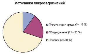 По данным Всемирной организации здравоохранения (ВОЗ) источниками загрязнения воздуха является окружающая среда, на долю которой приходится 5–10% от общего числа поступления микробов; оборудование (15–20%) и человек, количество выделяемых частиц от которого составляет 70–80%.